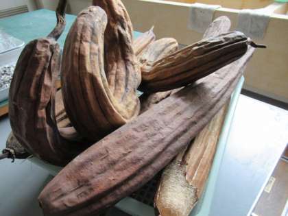 昨年度収穫が途絶えることのなかったヘチマたちが、今年も茶色に色づいてきたので何本か収穫しました。