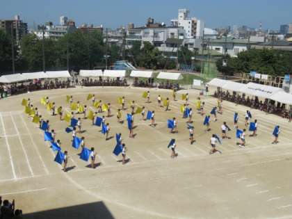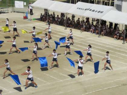最後の演目は6年生の団体演技 フラッグ演技でした。