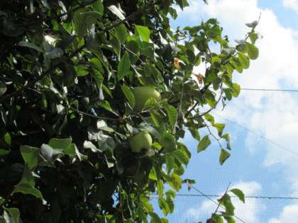 カリンの木に大きな実がついています。もう少ししたら果実の芳香が漂ってくることでしょう。