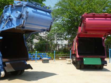 小学校4年生の社会科で学習する「ごみの処理と活用」について、授業の一環としてパッカー車出前体験をおこないました。分別の方法を学習し、実際に自分たちの作ったごみをパッカー車に投入する体験学習を行いました。児童は集中して活動していました。