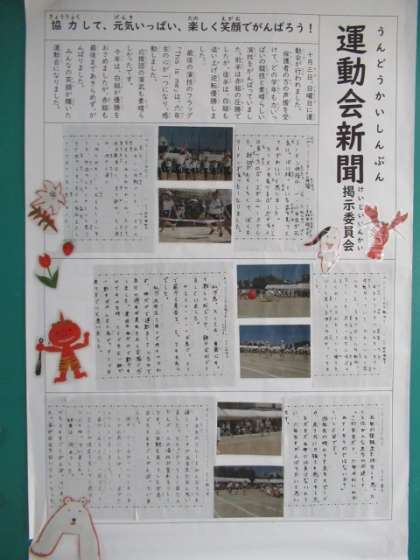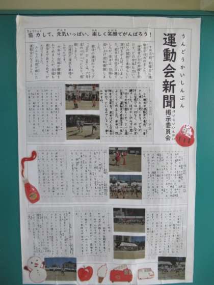 掲示委員会が作成した運動会新聞が校内の3か所に掲示されています。