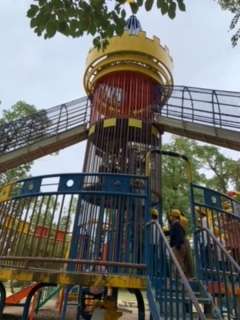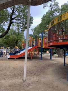 おやつもいっぱい食べて、次は遊具で遊びます。