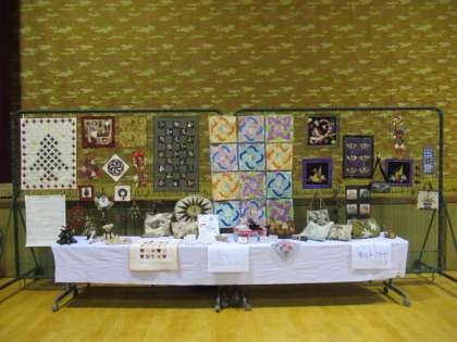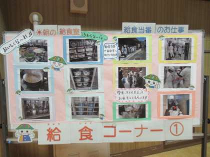 PTA監修の給食の掲示物やキルトクラブの方々の作品も展示されています。