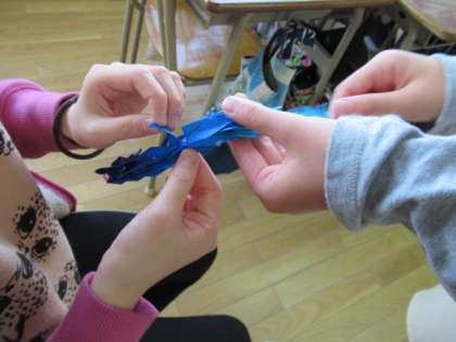 慣れるまでに時間を少し要しましたが、グループのメンバーと協力し合いながら、丁寧に千羽鶴をつくっていきました。