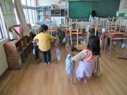 たて割り班できまった場所を班のメンバーで役割分担しながら清掃します。