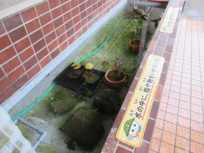 寒い中でも学校の玄関前プールに住まう帝塚山のメダカたちは元気です。