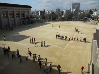 昼休み、運動場を見下ろすと5グループが大縄の練習をしていました。