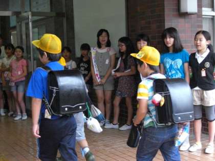 児童会運営委員会の児童が「あいさつ運動」として登校時、玄関に立ち大きな声であいさつをしてくれました。最初は、小さかったみんなのあいさつの声も、運営委員の大きな声につられて、徐々に大きな声が出るようになってきました。