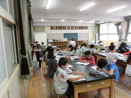 6年生の理科の授業中にやってきた可愛らしい訪問客のみなさん方は、授業の様子よりも、グッピーの水槽の方が気になる様子でした。