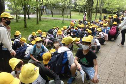 今日は、新しい学年になって初めての校外学習でした。3学年で170名以上の人数で、南海電車に乗って、錦織公園へ行きました。