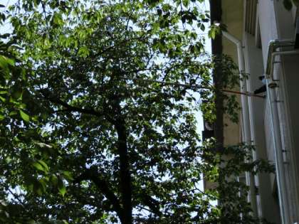 3階トイレの窓を開けると桜の木があります。そこにカラスが巣を作りかけていました。