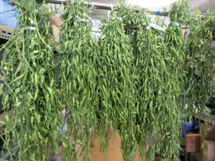 そして刈り取りをし、束ねて、理科準備室に陰干ししました。