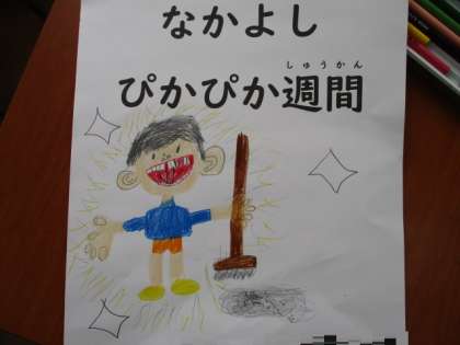 来月の「なかよしぴかぴか週間に」向けてのポスターづくりも行いました。