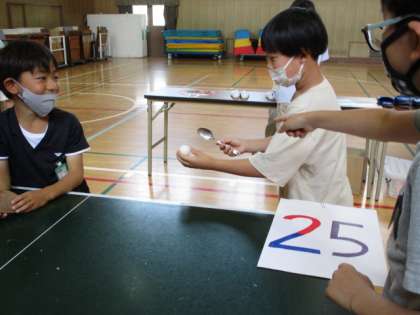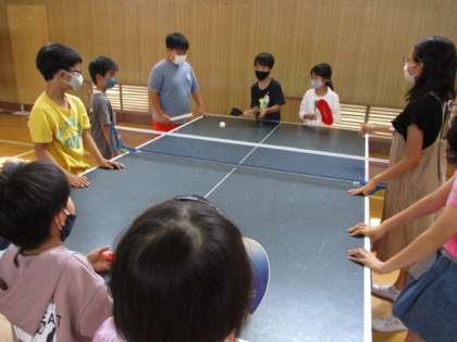 卓球対決を前に、クジを引いて使うラケットを決めます。