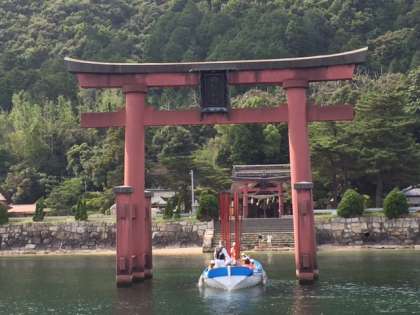 ついに白髭神社に到着しました。かいを垂直に立てて、鳥居をくぐりぬけました。