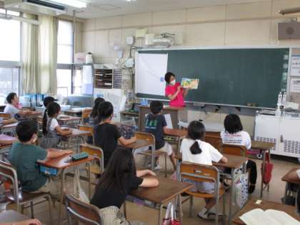 自分のクラスでない教室に赴き、お気に入りの本の読み聞かせをする・・・子どもたちが少しでも本に親しめるようにとの思いで、スタートした「シャッフル読書」。