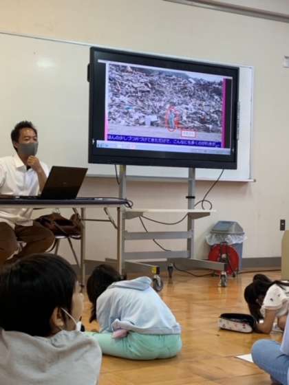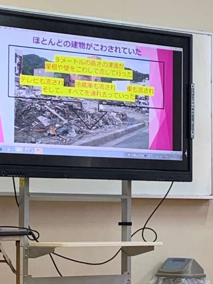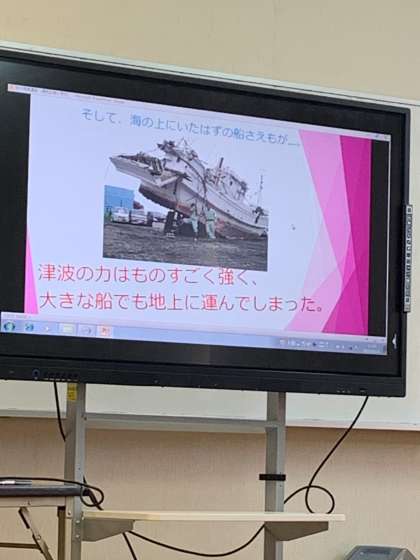準備してくださった津波被害の実際の映像に、子どもたちも息を呑みました。