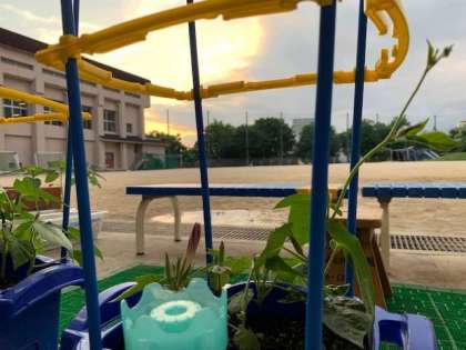 1年生がお世話しているアサガオに蕾がつき始めました。