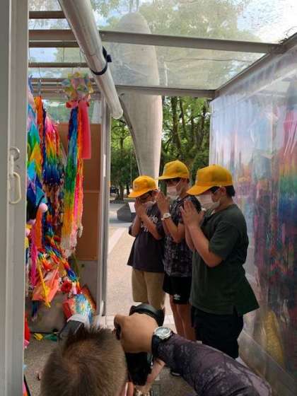 皆で折った千羽鶴を献納しました。