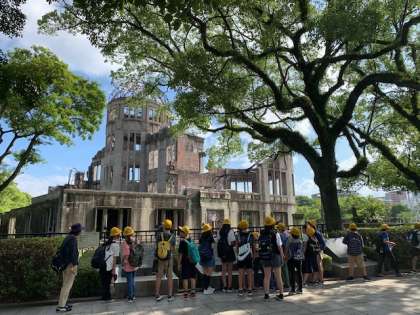 平和記念公園を後にする前に、爆心地付近を散策しました。