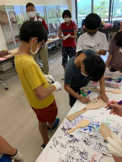 同時に大しゃもじに寄せ書きも書いていきます。