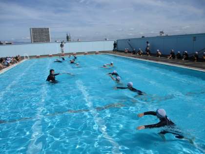 後半の時間帯は泳力別にプールを縦に使ってクロールの練習をしました。