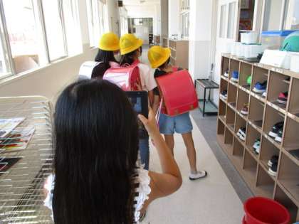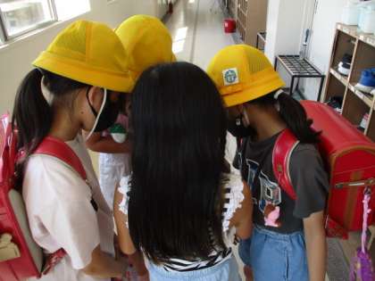 6時限目4年生の教室前で帰り支度をする子が数名。