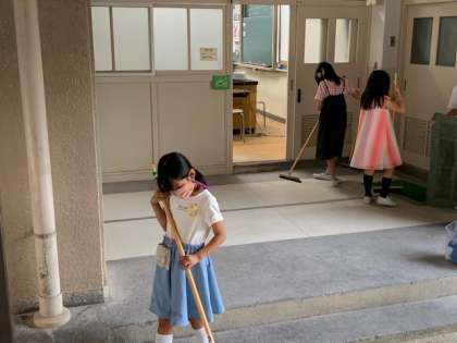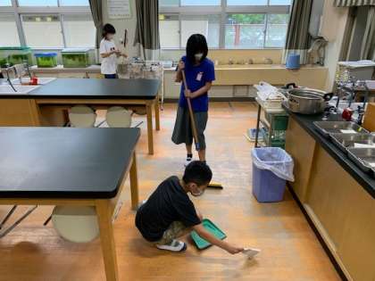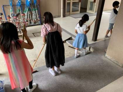 子どもたち、しっかりと役割分担をしながら掃除を進めています。