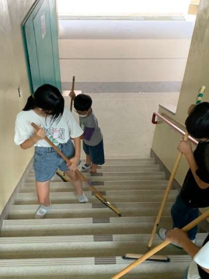 高学年が低学年をしっかりとリードしながら、丁寧な掃除をするたてわり班が多いです。