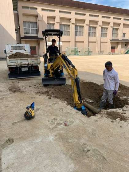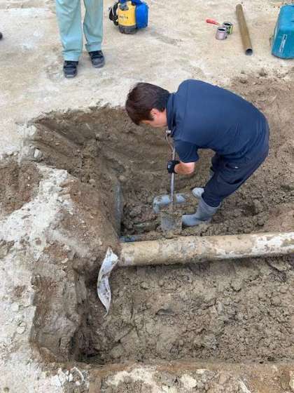 ピンポイントで地面を掘り起こした後、水道管の漏水部分を切断、新しい管に交換していただきました。