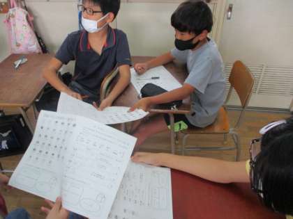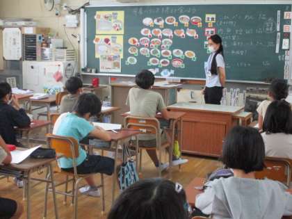 主食、主菜、副菜を学んだあと、自分で栄養バランスのとれた献立を考えました。