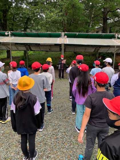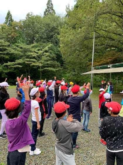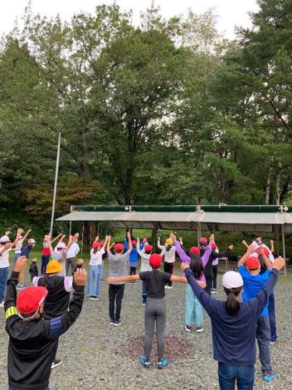 朝のひんやりとした空気の中で、ラジオ体操をしました。