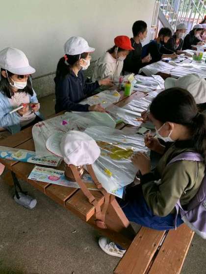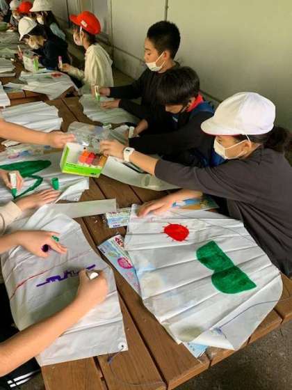 部屋の整理も終えて、最後のイベントの凧づくりです。