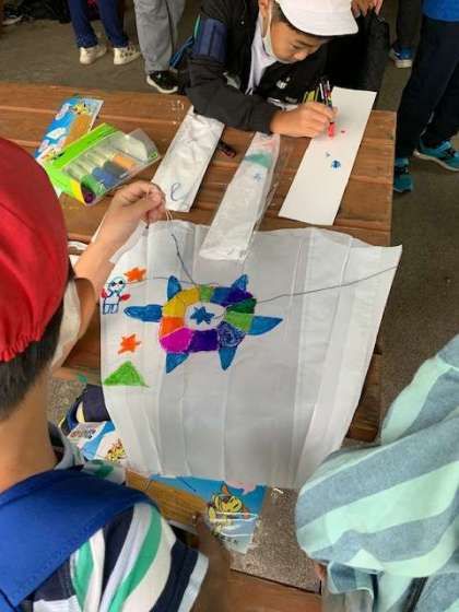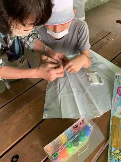 凧糸を結んで、畳んだら袋に入れて、ハイ!完成です。