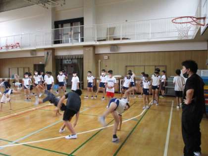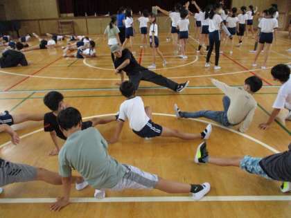 さっきまで見ているだけだった凄いダンスの基本動作を、何回も何回も繰り返し練習します。