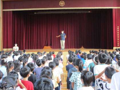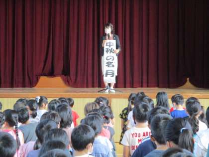 校長先生からはお月見と敬老の日についてのお話、生活指導の先生からは登下校時に気を付けてほしいことについてのお話がありました。