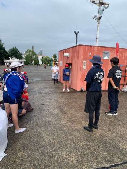 心配していた雨もあがり、寒さや風も大丈夫そうです。いよいよ淡輪の府立海洋センターでの活動が始まります。