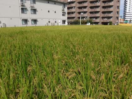 大阪市内でもこんなに穂を実らせる稲が育つんですね!