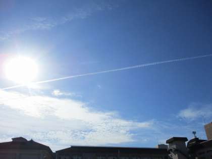 空には一筋の飛行機雲が真っすぐに伸びていました。