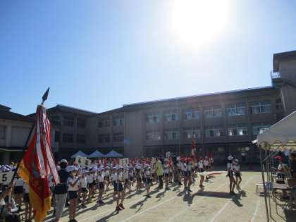 コロナ禍の運動会では、以前のような入場行進はありません。