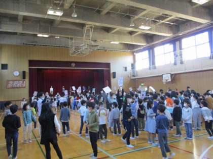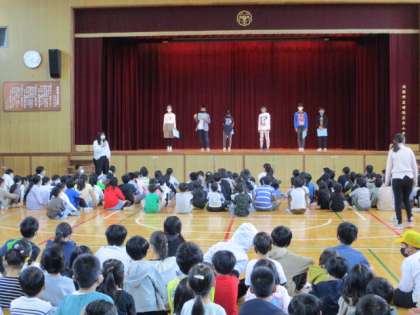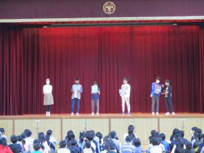 コロナ禍になって久しいですが、ようやく講堂での児童集会が復活。