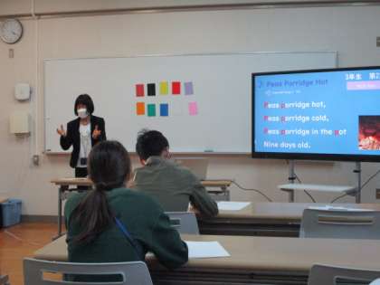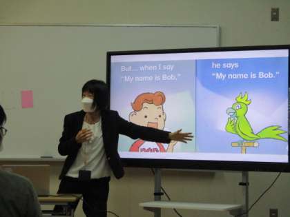 子どもたちの学年の発達段階に沿って、子どもたちが適度な緊張感をもちながら集中し、楽しんで英語を学ぶことができるような指導方法について、教えていただきました。
