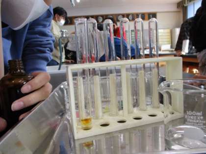 視覚的に分かりづらい水溶液があったので、今日はより正確に調べることができる薬品を使いました。