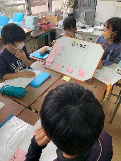 得意の思考ツールを使って、まずは自分でどんな内容にしたいかを具体的な理由を添えて考え、それらをグループでの話し合いで提案します。