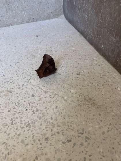 階段の踊り場で一枚の枯れ葉を見かけました。