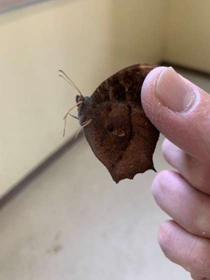 枯れ葉に擬態する蝶で、その種類は「クロコノマチョウ」。