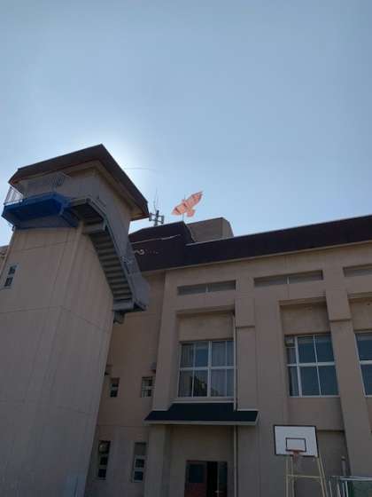 仲良しスポーツ集会の最中、怪しい影が運動場に映っていました。