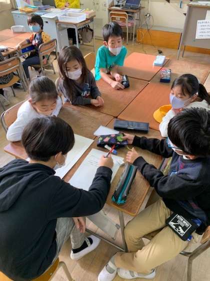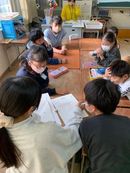 動画視聴を終えてから、たてわり班で体力アップ週間にがんばりたいと思う縄跳びや鉄棒の技について話し合いました。