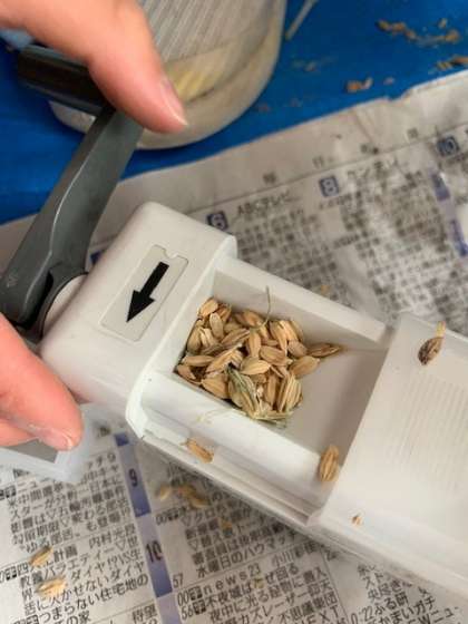 今日は、先週の脱穀で集めたもみの殻を外す作業に挑戦しました。