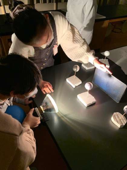 月の見え方が毎日変わっていくのはなぜなのかについて、自分たちで考えた方法で、実験を行いました。